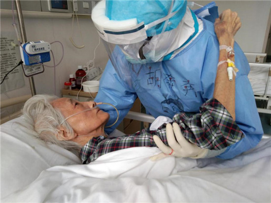 今年74歲的李秀紅,不僅感染新冠肺炎,而且罹患老年癡呆,生活需要時時照顧,而且剛入院時,對陌生環(huán)境的恐懼造成她心情壓抑,天天不說話,時不時落淚。為了讓老人放下心理包袱,胡奔奔在進行哄喂吃飯、服藥等正常護理之余,經常陪老人聊天、唱歌,后來老人情緒明顯好轉,還主動與胡奔奔一起扭起了舞蹈。后來,老人康復出院時,雖然無言 卻一直緊緊抓著胡奔奔的手久久不愿放開。胡奔奔說,那一刻,她落淚了,但心里確實說不出的高興。