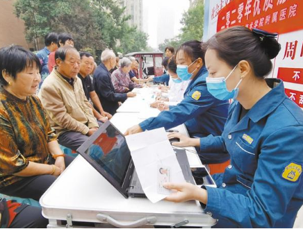 為滿足社區(qū)居民基本醫(yī)療衛(wèi)生服務(wù)需求,文昌社區(qū)衛(wèi)生服務(wù)中心開展了“優(yōu)質(zhì)服務(wù)基層行”活動(dòng),組織醫(yī)務(wù)人員走進(jìn)小區(qū),為居民進(jìn)行免費(fèi)健康體檢,并建立健康檔案。圖為9月25日,醫(yī)務(wù)人員在建業(yè)小區(qū)為居民測(cè)量血壓,并建立健康檔案。