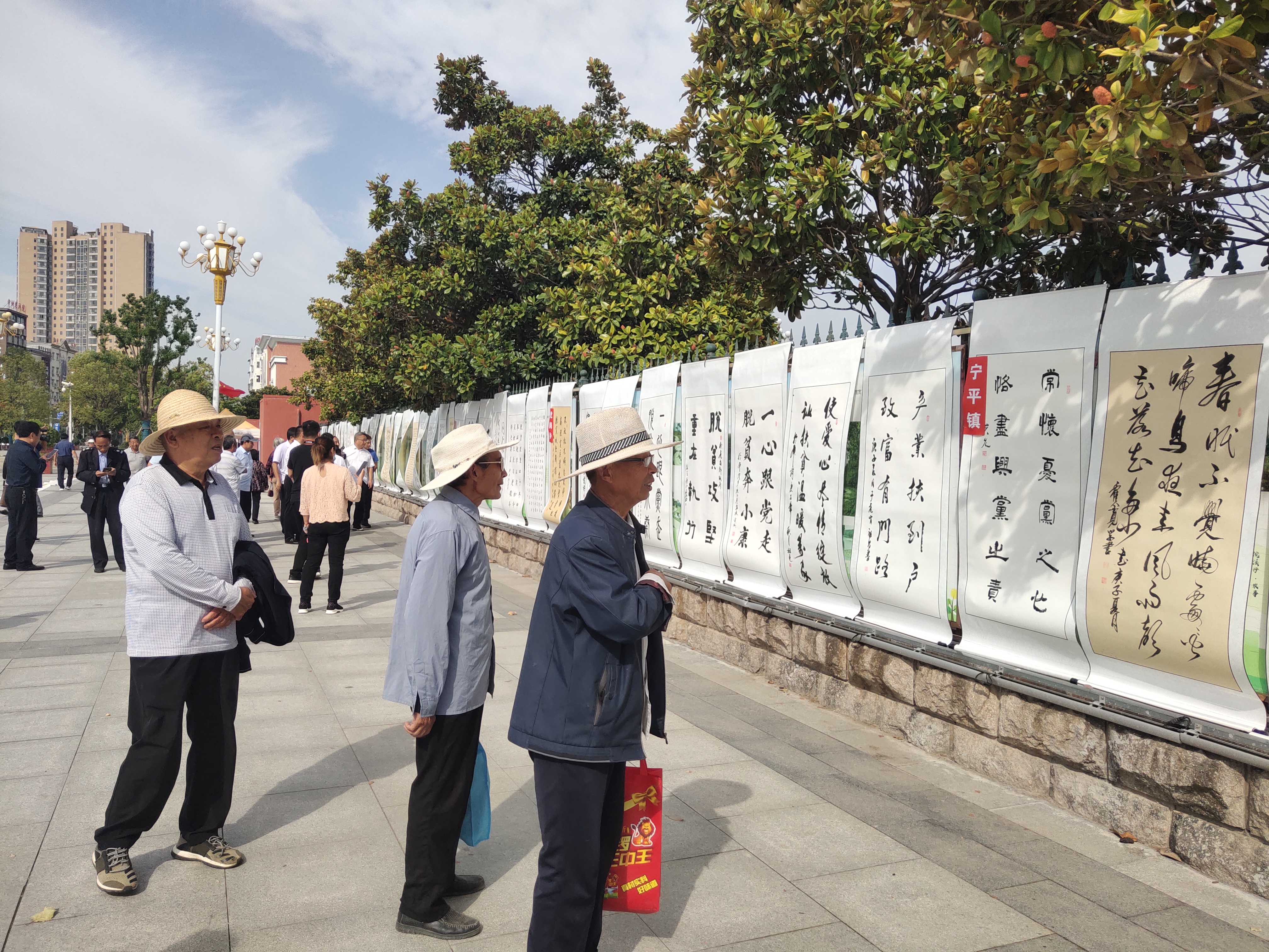 此次書法展以迎“國(guó)慶”,歌頌該縣決戰(zhàn)脫貧攻堅(jiān)、決勝全面小康取得的成效為主題,從23個(gè)鄉(xiāng)鎮(zhèn)辦266幅參賽作品中精選出119幅進(jìn)行展出,這些作品大多出自全縣農(nóng)民群眾之手,楷行隸篆,諸體皆備,流派紛呈,各具特色,代表了該縣當(dāng)代農(nóng)民書法隊(duì)伍的較高水平,彰顯了“中國(guó)書法之鄉(xiāng)”的綜合實(shí)力。此次書法展活動(dòng)的舉辦不僅進(jìn)一步堅(jiān)定文化自信,傳承中華優(yōu)秀傳統(tǒng)文化,繁榮全縣書法藝術(shù),更是為廣大農(nóng)民書法愛好者提供了一個(gè)交流學(xué)習(xí)的平臺(tái),他們用書法描繪了祖國(guó)的大好河山,歌頌了中國(guó)共產(chǎn)黨帶領(lǐng)全國(guó)人民取得的豐功偉績(jī),同時(shí)也為祖國(guó)的生日送上濃濃的祝福。②9