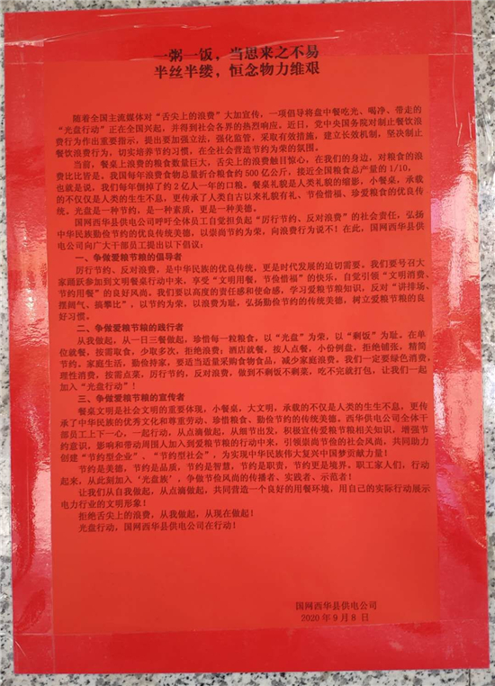 西華縣供電公司:“光盤行動(dòng)”成習(xí)慣 文明節(jié)儉倡新風(fēng)