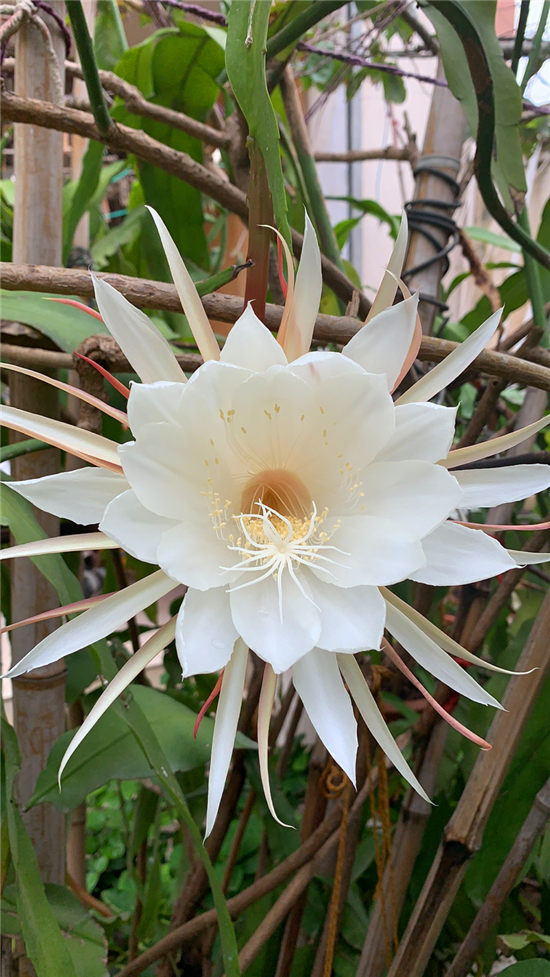 “養(yǎng)它20多年了,頭一次見(jiàn)它白天開(kāi)花?!泵缣觳耪f(shuō),從今年6月份到現(xiàn)在曇花幾乎每個(gè)月都會(huì)開(kāi)花一次,前面幾次開(kāi)花都是在晚上9點(diǎn)到11點(diǎn)之間開(kāi)放,而這一次在白天開(kāi)放,他感到十分驚奇。究其原因,養(yǎng)了幾十年花的苗天才說(shuō),可能跟這些天溫度急劇下降有關(guān)系。