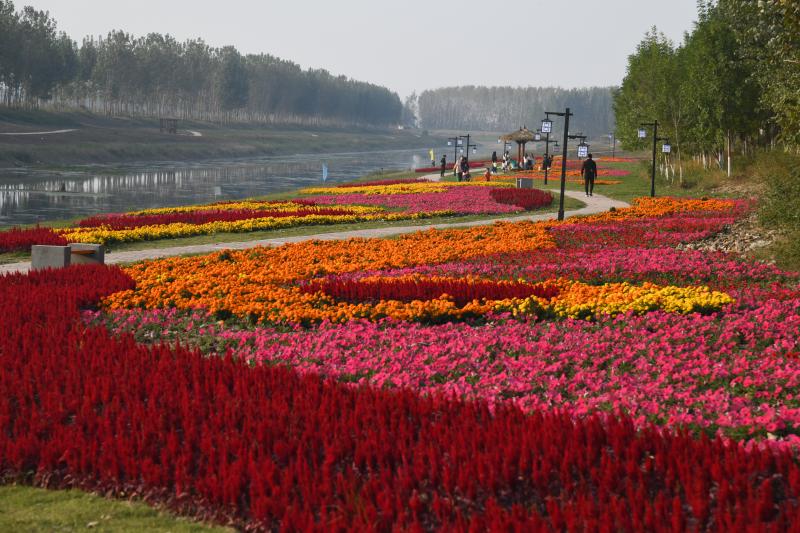10月20日,市民在商水縣高標準農(nóng)田灌溉渠兩岸游玩。