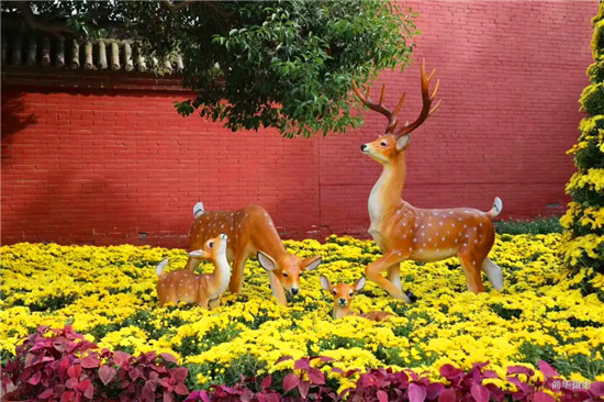 會上,相關(guān)負(fù)責(zé)人對當(dāng)前菊展的布展情況進行了通報。截至10月17日,耗時近半個月的第三屆重陽菊展布展工作已經(jīng)結(jié)束,布展面積約24000平方米,總計約40萬盆的金菊已全部布展到位。同時,設(shè)置200個景觀造型,各類觀賞菊150余種,大中小各類精品菊花3000余盆,等待游客的檢閱。