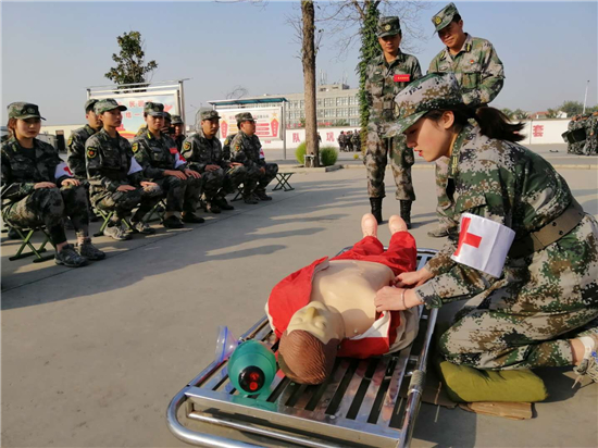 淮陽區(qū)人武部部長李保祥說,女基干民兵醫(yī)療救護(hù)專業(yè)分隊(duì)的20名專業(yè)隊(duì)員,在淮陽區(qū)民兵訓(xùn)練基地摸爬滾打的訓(xùn)練,她們斗志昂揚(yáng)、精神抖擻,展現(xiàn)出了新時(shí)期女基干民兵沖鋒在前、勇于擔(dān)當(dāng)、能打善戰(zhàn)的精神風(fēng)貌。她們在訓(xùn)練場上是訓(xùn)練尖子,上了戰(zhàn)場便是優(yōu)秀的醫(yī)療救護(hù)專業(yè)戰(zhàn)士。