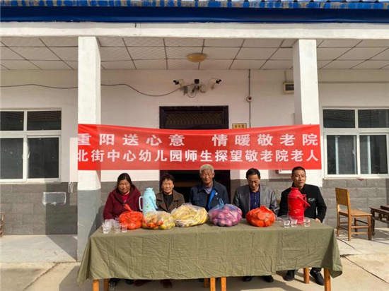 在九九重陽(yáng)節(jié)來(lái)臨之際,東夏亭鎮(zhèn)北街中心幼兒園師生到鎮(zhèn)敬老院看望慰問老人。為敬老院的老人們帶來(lái)水果、餅干等慰問品,也給老人們帶來(lái)了心靈上的慰藉。