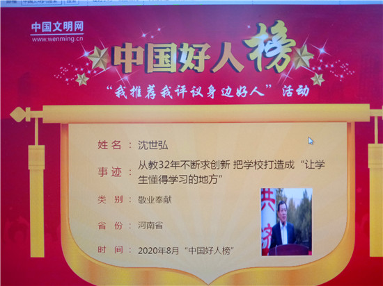 日前,中國文明網(wǎng)公布今年8月、9月中國好人評(píng)選結(jié)果:太康縣第一高級(jí)中學(xué)黨委書記、校長沈世弘從教32年不斷求創(chuàng)新,榮登8月敬業(yè)奉獻(xiàn)類“中國好人榜”;太康縣平安養(yǎng)殖專業(yè)合作社理事長王桂芳8年捐款捐物百余萬元幫助困難群眾,榮登9月“中國好人榜”。至此,太康縣中國好人上榜人數(shù)達(dá)66人,位居全國縣級(jí)市首位。