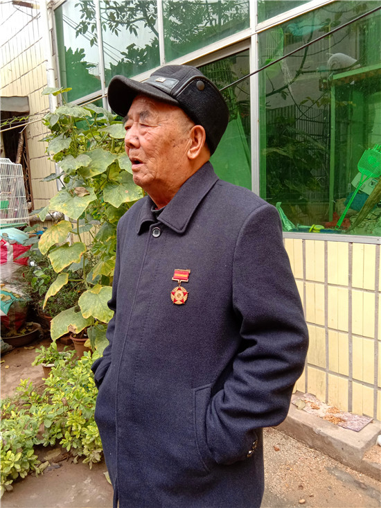 快到王景文家時,記者與他取得了聯(lián)系,沒想到他竟到路口來迎記者,看到他硬朗的身板和健康的身體,聽他說話聲音洪亮、底氣十足,記者還是很欣慰的,畢竟經(jīng)歷了70年的風(fēng)雨洗禮,還能行走自如、聲如洪鐘,的確是寶刀不老。被他迎進(jìn)家,其老伴滿頭銀發(fā),喜瞇瞇地讓記者進(jìn)屋,王老先生去里屋找出了一枚抗美援朝紀(jì)念章,并說抗美援朝和平紀(jì)念章等物品都放丟了,找不到了,有些遺憾。記者就開門見山地說要聽他講講參加抗美援朝的故事,他不好意思地笑了:“講不好,年齡大了,記性不好,有好多事都記不清了……”當(dāng)問起他老家是哪里時,王老先生還是打開了話匣子。1934年,他出生在淮陽縣劉振屯鄉(xiāng)耿樓大隊李樓村,由于家境貧寒,他從小就跟隨家人一路逃荒要飯來到了扶溝,但日子還是艱難,為了能活命,父母無奈把他送給了扶溝縣城一戶人家,從此他就成了這戶人家的孩子,并于1951年5月結(jié)婚。可結(jié)婚沒幾個月,縣里就開始征兵了。當(dāng)兵離家,要丟下妻子,更何況妻子已有孕在身,他真舍不得;保家衛(wèi)國,是義務(wù)是責(zé)任是擔(dān)當(dāng),他責(zé)無旁貸。家與國,他毅然選擇去當(dāng)兵。與新婚燕爾的妻子依依惜別,他踏上了行軍的征程。那時可沒有車接送,去往目的地,全靠兩條腿,行軍與訓(xùn)練的苦與累難以想象。問他不害怕當(dāng)兵打仗嗎?他回答:“不怕!”語氣堅定而有力。生活的磨難讓他對安穩(wěn)的生活有一種渴望,他明白戰(zhàn)爭會讓國家陷入混亂不堪的局面,老百姓的生活會更加艱難,為了祖國的和平安寧和兄弟姐妹的幸福,他愿意去當(dāng)兵打仗。保家衛(wèi)國的種子早已種在了他的心里。