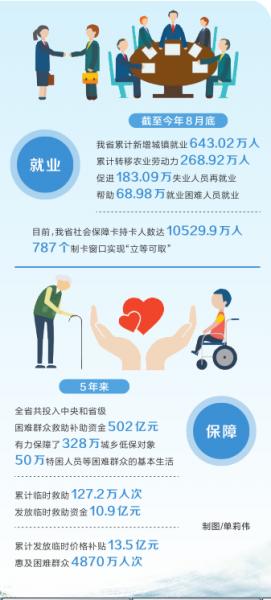 通過織牢就業(yè)經(jīng)緯線,筑牢民生之本。截至今年8月底,我省累計新增城鎮(zhèn)就業(yè)643.02萬人,累計轉(zhuǎn)移農(nóng)業(yè)勞動力268.92萬人,促進183.09萬失業(yè)人員再就業(yè),幫助68.98萬就業(yè)困難人員就業(yè);截至今年6月底,農(nóng)民工返鄉(xiāng)創(chuàng)業(yè)人數(shù)累計達159.71萬人,帶動就業(yè)人數(shù)突破947.68萬人。5年來,我省牢牢守住了高校畢業(yè)生的就業(yè)“經(jīng)線”、農(nóng)民工的就業(yè)“緯線”,實現(xiàn)了就業(yè)穩(wěn)定,社會穩(wěn)定。