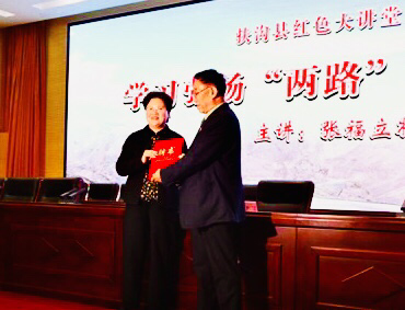 為了更好地學習張福林烈士事跡,弘揚“兩路”精神,激發(fā)全縣干部群眾的干事創(chuàng)業(yè)斗志,此次講座請回了張福林烈士的弟弟——張福立將軍,為大家講述了“兩路”精神。