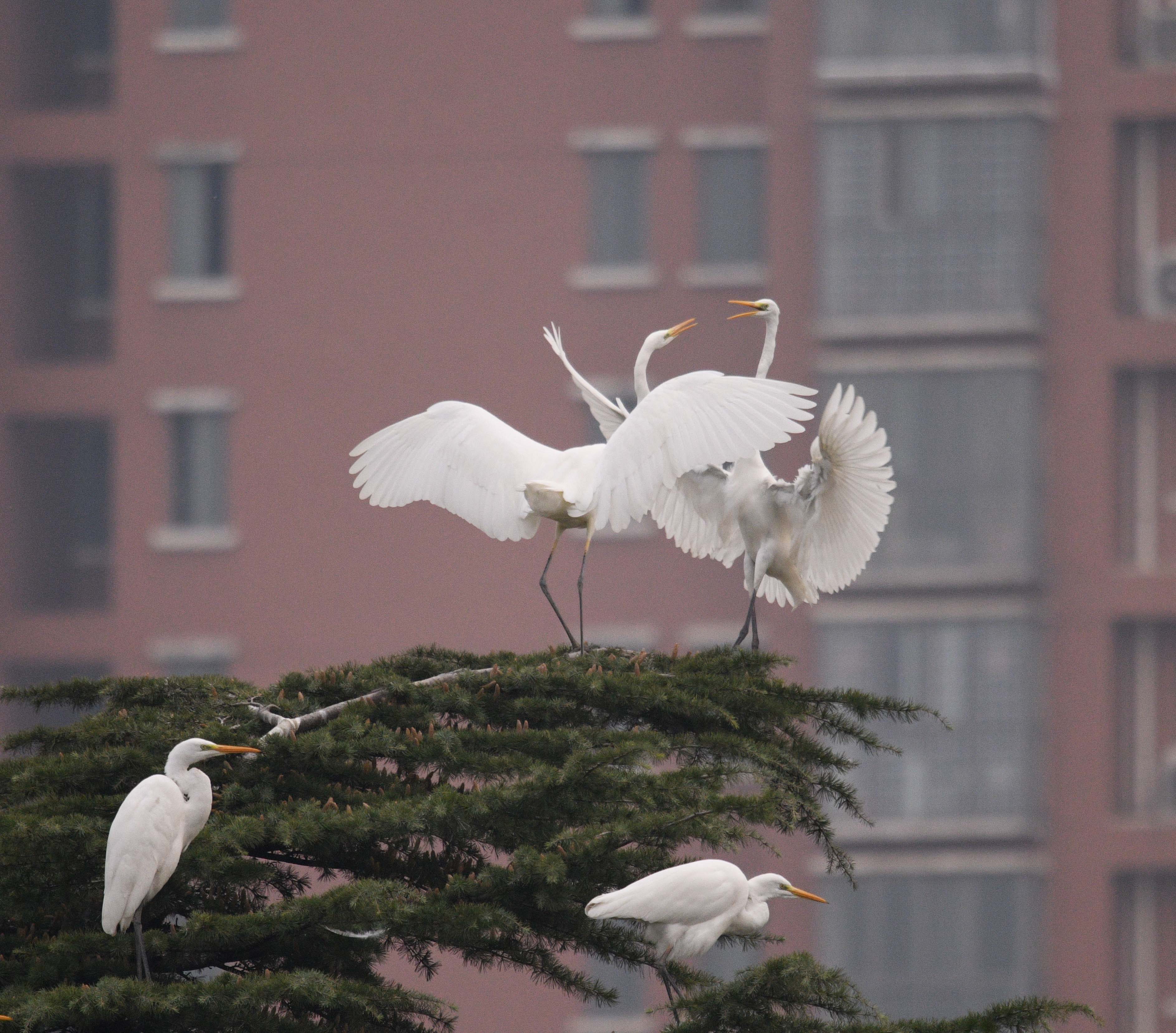 近日,市區(qū)漢陽(yáng)路沙潁河大閘的中心島林間,飛來(lái)近百只白鷺。這里幽靜舒適的環(huán)境和河里豐富的魚(yú)蝦,滿足它們棲息和生活。它們面對(duì)行人,不驚不詫,時(shí)而盤(pán)旋嬉戲,時(shí)而捉魚(yú)果腹。人鳥(niǎo)和諧相處,構(gòu)成美麗的生態(tài)風(fēng)情。②9