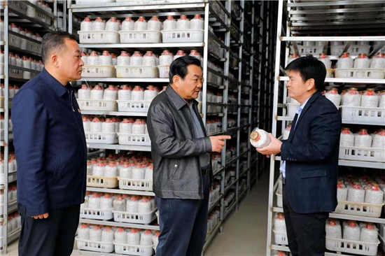在羅古洞行政村預(yù)脫貧戶(hù)許廣東家中,王國(guó)璽聽(tīng)取了該戶(hù)的幫扶情況匯報(bào),詳細(xì)詢(xún)問(wèn)許廣東政策落實(shí)情況,對(duì)該戶(hù)采取的針對(duì)性幫扶措給予了肯定。在華瑞農(nóng)牧食用菌基地,王國(guó)璽參觀了該基地產(chǎn)品展示廳、直播間,了解企業(yè)生產(chǎn)、擴(kuò)建情況,夸贊該企業(yè)為全縣特色食用菌種植帶好了頭,起到了很好的示范帶動(dòng)作用,鼓勵(lì)該企業(yè)要利用好網(wǎng)絡(luò)直播平臺(tái),拓寬產(chǎn)品銷(xiāo)路,增加企業(yè)效益,帶動(dòng)更多群眾受益。在君趙食用菌基地,王國(guó)璽實(shí)地了解該企業(yè)菌種制作、生產(chǎn)流程,并對(duì)菌包生產(chǎn)、加工過(guò)程提出了改進(jìn)建議。
