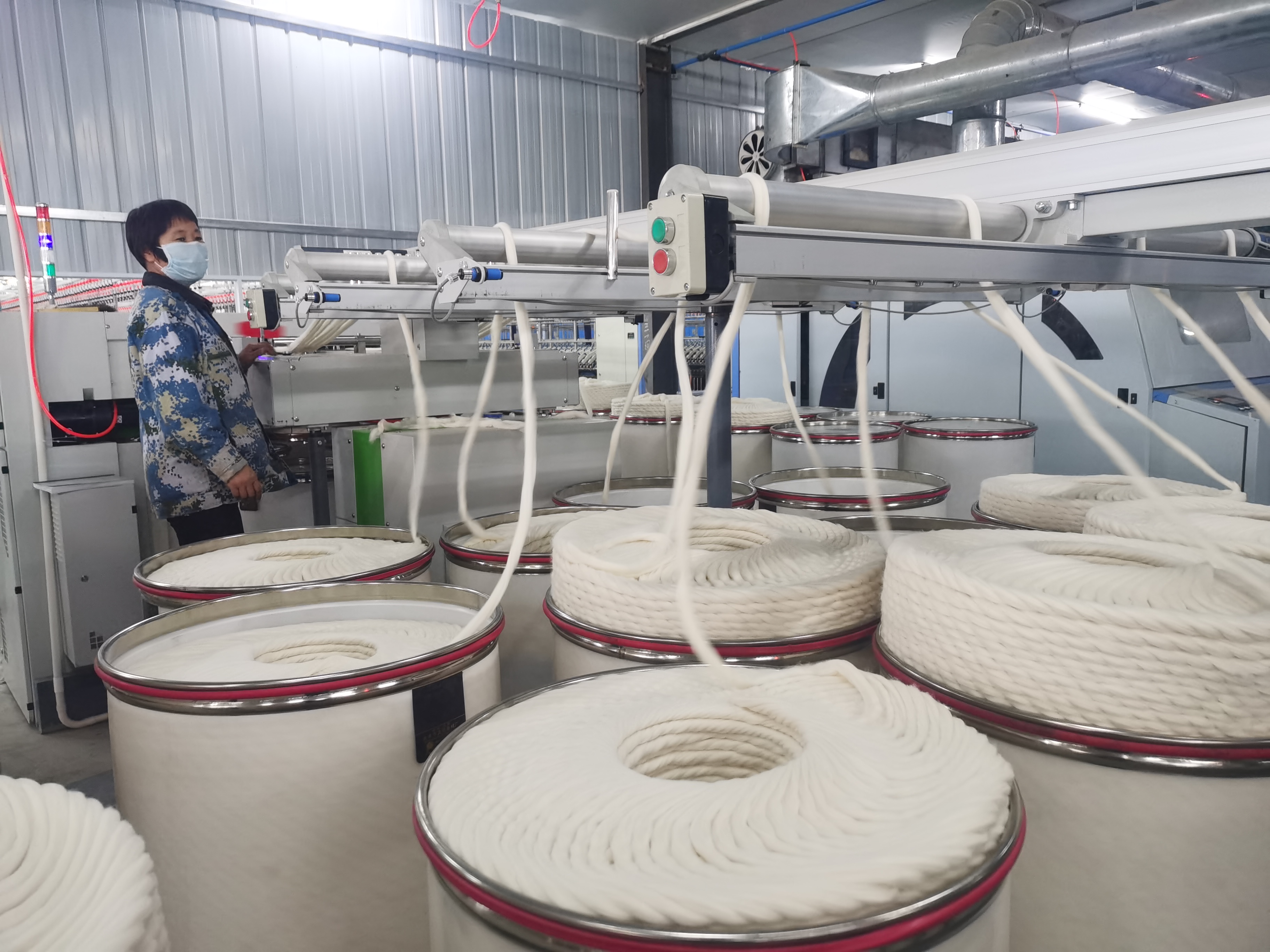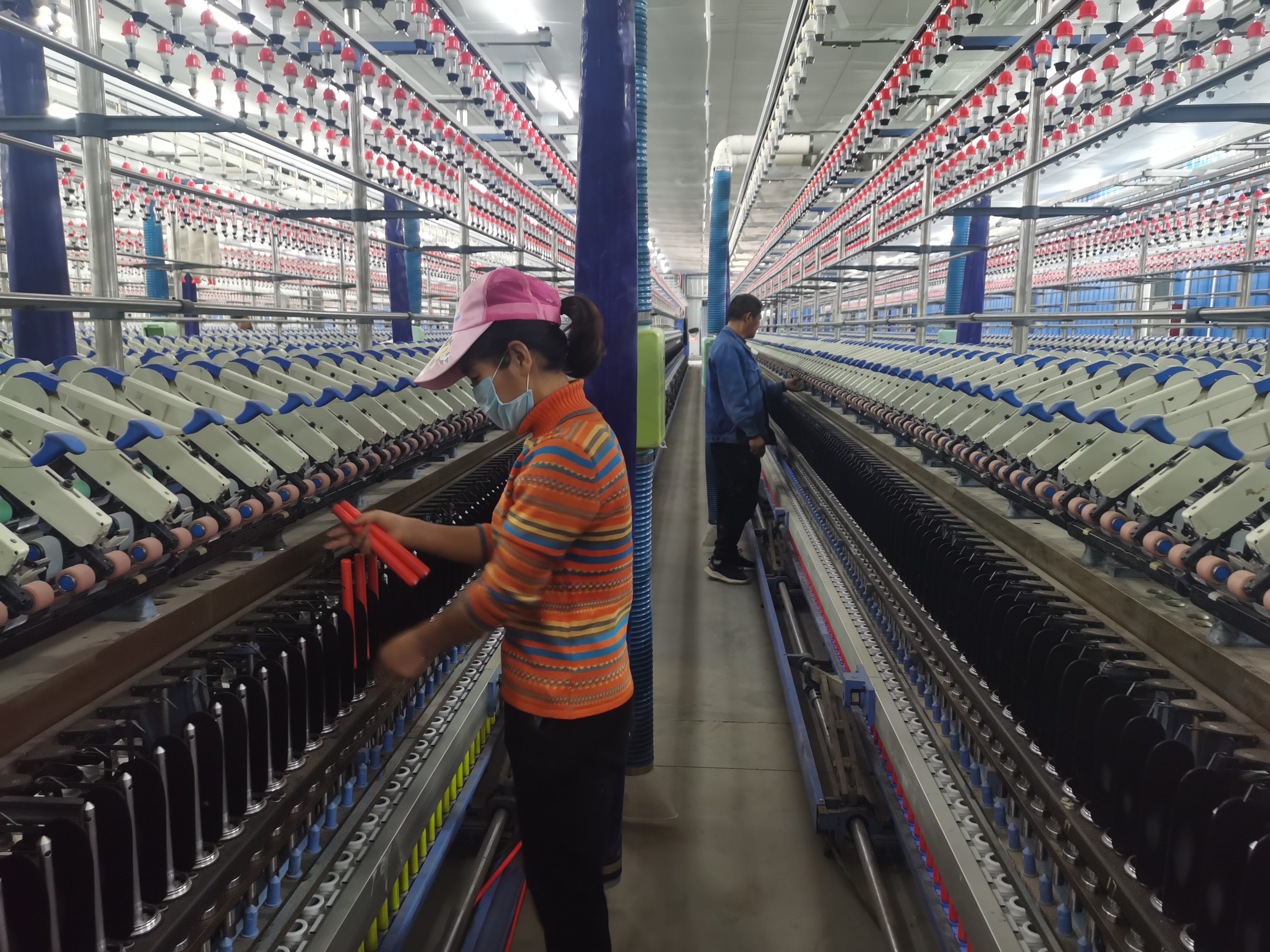 11月9日,扶溝縣博發(fā)紡織有限公司一期2萬紗錠生產(chǎn)線進口設(shè)備安裝完畢,正在試車。
