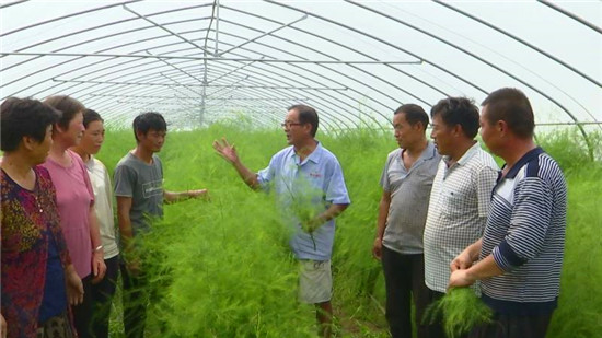 蘆筍種植是一個勞動密集型產業(yè),整棚、育苗、移栽、除草、施肥、打藥、采摘、撿筍、分割、裝箱等工序都需要大量的勞動力,每天都有60多位周邊村莊的村民來王永振的合作社務工,每人每天60元的工資,打工顧家“兩不誤”。“我歲數(shù)大了,也不方便外出打工,在蘆筍種植基地務工,一個月工資2000元,既增加了收入以補貼家用,又能照顧家庭?!苯衲?0多歲的劉莊村貧困戶孫宜勤高興地說。