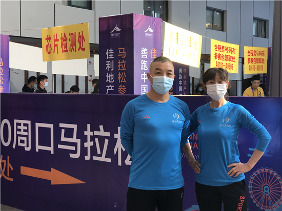 活動(dòng)現(xiàn)場(chǎng)前來領(lǐng)取賽前裝備的人源源不斷,有的是朋友結(jié)伴而來,有的趁工作間隙而來,還有的帶著孩子前來,十分熱鬧。王勝利先生今年是第四次參加周口馬拉松賽了,他說:“2017年我跑了5小時(shí)30分,2018年是4小時(shí)28分,2019年跑了4小時(shí)17分,通過這幾年堅(jiān)持不懈地鍛煉,今年我想爭(zhēng)取跑到4個(gè)小時(shí)以內(nèi),不跟別人比,主要是不斷地自我超越!”今年的周口馬拉松賽還吸引了許多“都市麗人”參加,劉女士就是其中一員,“我今年36歲了,平時(shí)就非常喜愛健身、長(zhǎng)跑,今年是我第一次報(bào)名參加馬拉松賽,希望能夠挑戰(zhàn)自己。”她告訴記者。
