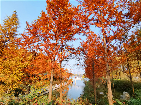 11月14日,陽光明媚,深秋的周口公園內(nèi)五彩斑斕,游人如織。