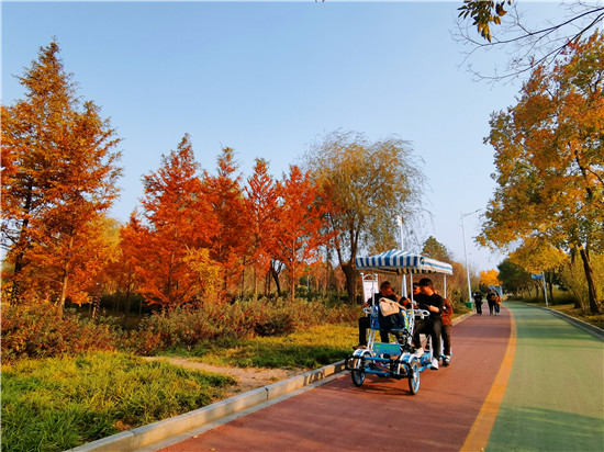 金黃色的杏葉、艷紅的楓葉、各色的鮮花……現(xiàn)在,市民們不用外出旅行,在家門口就可欣賞到這些美景。大家在周末時攜家在公園游玩、拍照很是愜意。