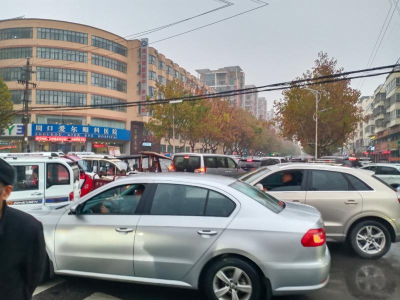 11月17日7時(shí)30分許,天空下起了小雨,在這樣的天氣里,開車出行的市民多了起來,記者在周口中心城區(qū)建安路與育新路交叉口附近看到,過往車輛把這里堵了起來,車輛前行緩慢。③7