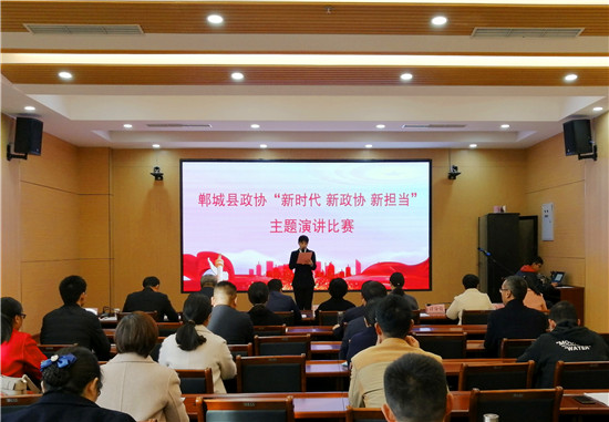 11月19日上午,鄲城縣政協(xié)舉行“新時代 新政協(xié) 新?lián)?dāng)”主題演講比賽,縣政協(xié)主席王偉、副主席李素梅觀看比賽并為獲獎選手頒獎。