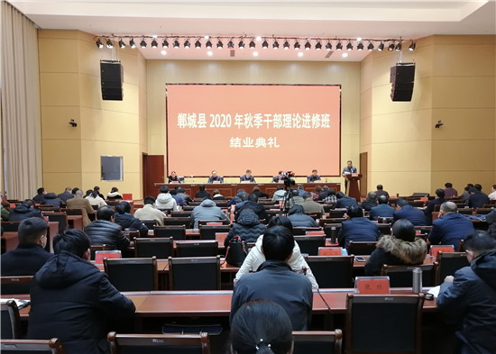 11月25日下午,鄲城縣2020年秋季干部理論進修班舉行結(jié)業(yè)典禮,縣委副書記、黨校校長王獻超,縣委常委、組織部長蔣磊出席結(jié)業(yè)典禮。