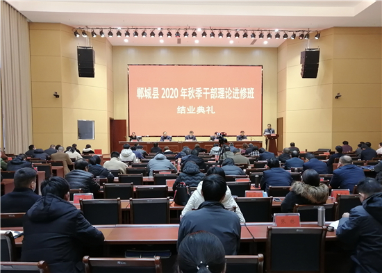 11月25日下午,鄲城縣2020年秋季干部理論進(jìn)修班舉行結(jié)業(yè)典禮,縣委副書記、黨校校長王獻(xiàn)超,縣委常委、組織部長蔣磊出席結(jié)業(yè)典禮。