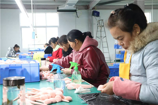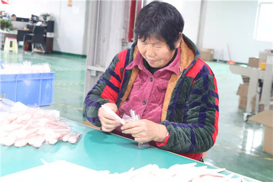 河南雅彩美妝用具有限公司負(fù)責(zé)人趙廣才介紹,公司主要從事化妝刷、美妝用具加工,十分適宜留守婦女干。車間里的工人基本都是貧困戶和住在附近的留守婦女。在家門口上班,既能掙錢,又方便照顧家人。每天中午公司還提供午餐,工人早上來上班,下午下班不耽誤回家照看孩子。“我上班已經(jīng)10多天了,再過不久,就可以領(lǐng)工資了,真是高興!”68歲的村民張美榮告訴記者,家里孩子們都大了,自己在家閑著也沒啥事,她就到包裝車間上班,一個(gè)月算下來能掙2000多元,活也不重,既鍛煉了身體,又提高了家庭收入。