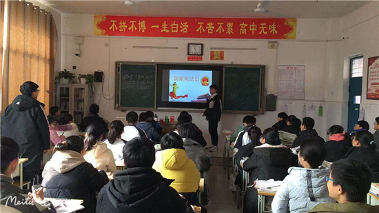 扶溝縣高中二(6)班學(xué)生楊毅說:“通過學(xué)校開展的學(xué)憲法活動,了解了很多和生活息息相關(guān)的法律知識,增強了法治觀念,我要做尊法、守法、護法的好少年?!?/p>