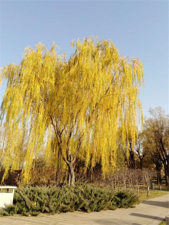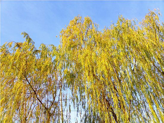 冬日暖陽照三川,垂柳更換鵝黃衫。無盡情思春可寄,千條萬條隨風(fēng)翩。12月15日,我市天氣晴朗,路旁一排排垂柳隨風(fēng)搖曳,像一個個舞動的小精靈,又像一團(tuán)團(tuán)鵝黃色的薄霧,如此美不勝收的風(fēng)景就像一幅畫,令人忍不住駐足欣賞。
