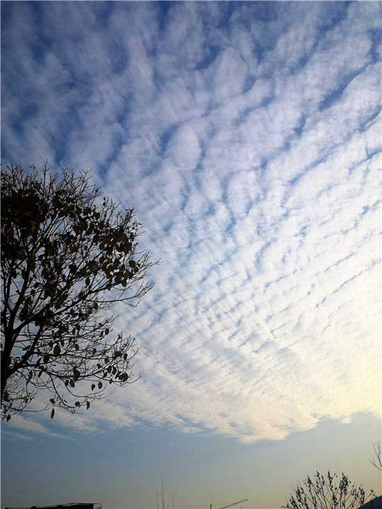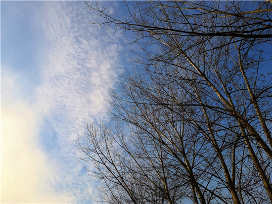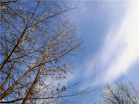 近日,我市天氣晴朗,漫步在街邊小道上,抬頭望去,處處皆是風(fēng)景,比如蔚藍(lán)的天空、挺立的高樓、蒼茫的禿枝……這一切都勾勒成了一幅唯美的冬日畫(huà)卷。