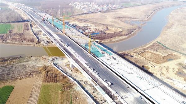 周口北環(huán)新建工程項目全線14.445km,其控制性工程為賈魯河大橋,全長904.22m。目前,賈魯河大橋左半幅橋油面已鋪設(shè)完畢,右半幅橋油面正在緊張施工,預(yù)計本月底完工。