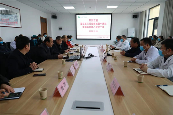 12月28日下午,周口市中心醫(yī)院神經(jīng)內(nèi)科二病區(qū)主任、卒中中心醫(yī)療總監(jiān)、主任醫(yī)師夏磊到鄲城縣第二醫(yī)療健康服務集團縣中醫(yī)院現(xiàn)場指導卒中中心建設工作,全面查看該院卒中中心建設及發(fā)展情況。集團總醫(yī)院副院長史昊、楊俊、曹子成及相關(guān)科室負責人參加工作匯報。史昊主持座談會。