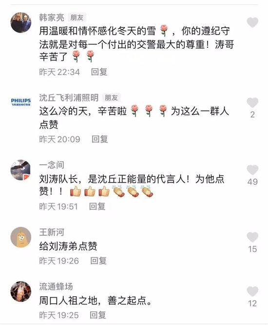 2021年元旦,記者聯(lián)系聯(lián)系上了視頻中的主人公——沈丘縣交警大隊城市中隊劉濤中隊長,雖然是元旦假日,他依然堅守在崗位上,他告訴記者,這是一名交警工作的日常,沒有想到自己和同事們的一個小舉動能獲得無數(shù)網(wǎng)友好評,這給了他們在以后工作中更大的動力,劉濤表示,風(fēng)雪無阻,滾滾車流中,他將為全縣人民的安全出行繼續(xù)堅守崗位。