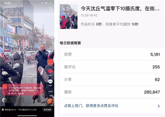 幾天來,一段關(guān)于沈丘交警的抖音徹底火了!一名學(xué)生家長把這段視頻上傳到了抖音,沒想到,短短幾天時間,該視頻播放量近三十萬……