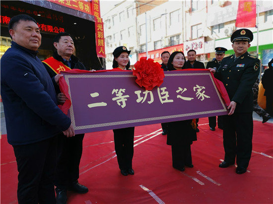 “這么冷的天沒(méi)想到軍地領(lǐng)導(dǎo)親自上門(mén)送喜報(bào),還定制了功臣之家的光榮牌匾……”看到送喜報(bào)“隊(duì)伍”的到來(lái),趙金豹激動(dòng)地連說(shuō)到。