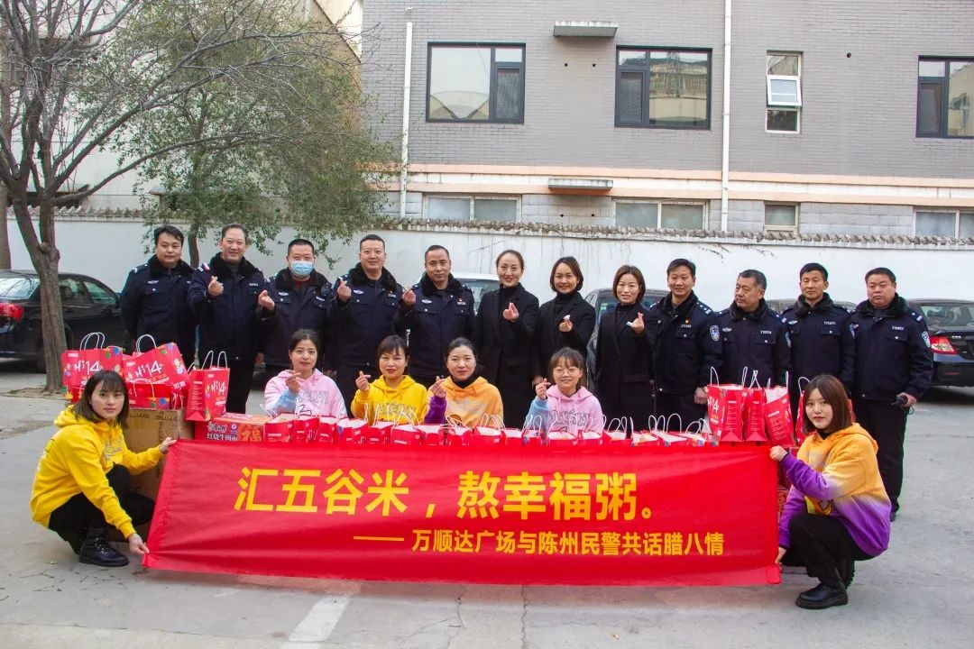 站好城市第一班崗的還有公安民警,為了城市的平安,公安民警常常值守夜班。萬順達(dá)廣場當(dāng)天為周口市公安局川匯分局陳州派出所的民警們送上了臘八祝福,提醒他們?cè)谑刈o(hù)市民平安的同時(shí),也別忘了關(guān)心自己。