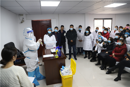 本次培訓內(nèi)容主要包括衛(wèi)生檢驗、流行病學調(diào)查、消殺。在各專業(yè)培訓中,首先由李埠口鄉(xiāng)衛(wèi)生院院長范建華就我市新冠肺炎疫情防控的政策、機構(gòu)建設(shè)、工作流程、防控措施、風險點,以及下步工作任務(wù)進行了詳細講解。隨后,周口市人民醫(yī)院感控科副科長聶風杰對疫情防控工作中個人防護要點及防護服的穿脫步驟進行了現(xiàn)場操作演練。周口市人民醫(yī)院發(fā)熱門診護士王越、感控科科員張曉露對新冠病毒核酸檢測采樣方法、個人防護、樣本存取轉(zhuǎn)運及交接流程等內(nèi)容進行了講解,并現(xiàn)場演示防護用品穿脫、口咽拭子、鼻咽拭子樣本采集等操作方法。港區(qū)文教衛(wèi)科技辦公室相關(guān)負責人表示,本次培訓,既著眼當前疫情的防控需要,又放眼衛(wèi)生應(yīng)急隊伍的長遠發(fā)展,為進一步提高港區(qū)衛(wèi)健系統(tǒng)疫情防控應(yīng)急處置能力、努力筑牢全區(qū)廣大人民群眾生命和身體健康的防控堡壘起到了有力的技術(shù)支撐。③5