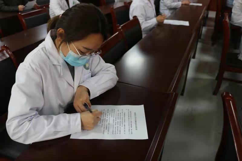 培訓(xùn)會上,參與體檢的相關(guān)醫(yī)護人員與該縣征兵辦公室現(xiàn)場簽訂、遞交《廉潔征兵責(zé)任書》《廉潔工作承諾書》《2021年度征兵體檢工作承諾書》。