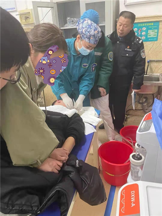 當(dāng)日21時(shí)許,在該賓館一房間,丁高嶺通過(guò)半掩的門(mén),發(fā)現(xiàn)了輕生男子,急忙沖過(guò)去,取下了吊在其脖子上的電話線,立即通知120醫(yī)生進(jìn)行救治,并與醫(yī)生一起將其拉至項(xiàng)城市第一人民醫(yī)院進(jìn)一步治療。張某某極不配合、拒絕救治,丁高嶺苦口婆心勸說(shuō),并電話聯(lián)系到其父母,共同做其思想工作。經(jīng)過(guò)規(guī)勸,急救醫(yī)生才得以對(duì)其進(jìn)行洗胃等對(duì)癥處置,經(jīng)過(guò)近40分鐘的搶救,張某某終于脫離了生命危險(xiǎn)。