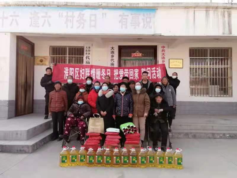 為把省、市婦聯(lián)“關(guān)于做好2021年春節(jié)慰問(wèn)困難婦女兒童和家庭關(guān)愛(ài)幫扶工作的通知”精神落到實(shí)處,2月2日,淮陽(yáng)區(qū)婦聯(lián)帶著威士德教育、市級(jí)巧媳婦就業(yè)創(chuàng)業(yè)示范基地霖海服飾有限公司捐贈(zèng)的愛(ài)心物資,先后深入到大連鄉(xiāng)代廟行政村、產(chǎn)業(yè)集聚區(qū)棠棣行政村開(kāi)展“情暖冬日 把愛(ài)帶回家”走訪慰問(wèn)活動(dòng),為14戶貧困婦女、留守兒童、困難黨員等家庭送去米、面、口罩、春聯(lián)等生活用品,并向他們送上新年的問(wèn)候和祝福。
