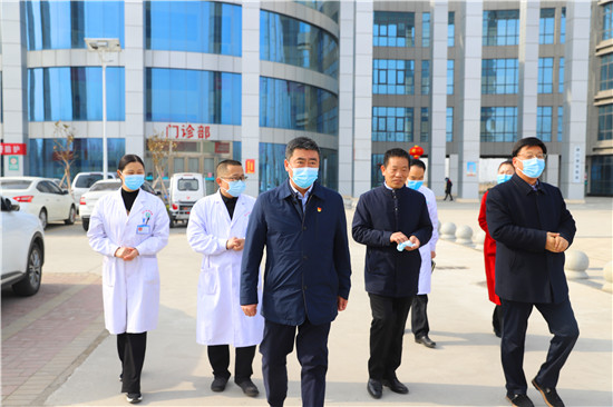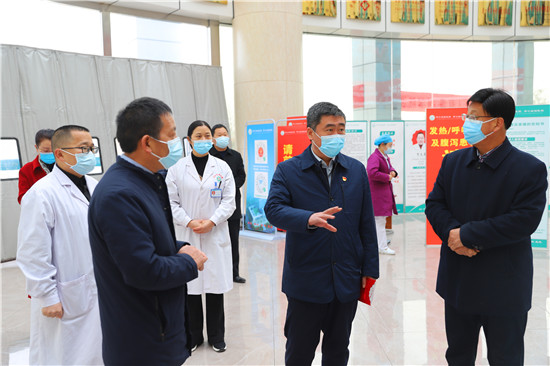 聽(tīng)取匯報(bào)后,孫鵬前往發(fā)熱門(mén)診實(shí)地查看了解疫情防控工作的各項(xiàng)措施,就當(dāng)前疫情防控重點(diǎn)與一線人員進(jìn)行深入交流。新冠疫情暴發(fā)以來(lái),港區(qū)醫(yī)院主動(dòng)承擔(dān)公共衛(wèi)生職責(zé),協(xié)助港區(qū)黨委、管委會(huì)為港區(qū)群眾筑起了一道堅(jiān)固的健康安全防線。武漢疫情暴發(fā)期間,周口港區(qū)醫(yī)院派出一支由8人組成的援鄂醫(yī)療隊(duì)前往武漢,在武漢商職醫(yī)院收治新冠肺炎患者117人。孫鵬對(duì)港區(qū)醫(yī)院在新冠疫情防控工作中展現(xiàn)出的擔(dān)當(dāng)、作為進(jìn)行表?yè)P(yáng),對(duì)8位援鄂醫(yī)療隊(duì)員冒著生命危險(xiǎn),無(wú)私奉獻(xiàn)、勇于擔(dān)當(dāng)?shù)木礃I(yè)精神表示贊賞。