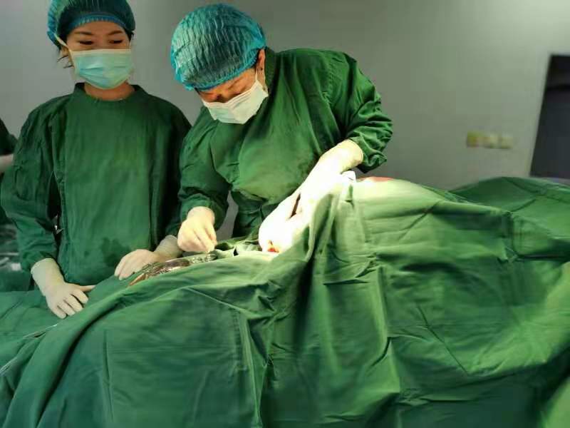 另一方面,病人家屬因缺乏相關醫(yī)學常識,似乎意識不到事情的嚴重性。楊秀麗更是心急如焚,但仍耐心溝通,確保最短的時間,最佳的速度,做好術前一切準備。同時,楊秀麗又電話通知新生兒科值班醫(yī)生做好搶救新生兒的準備。難度太大,病人體重過重,加之病情復雜,情況緊急,手術室主任時慶祥親自上臺進行麻醉,產二科楊秀麗親自主刀手術。