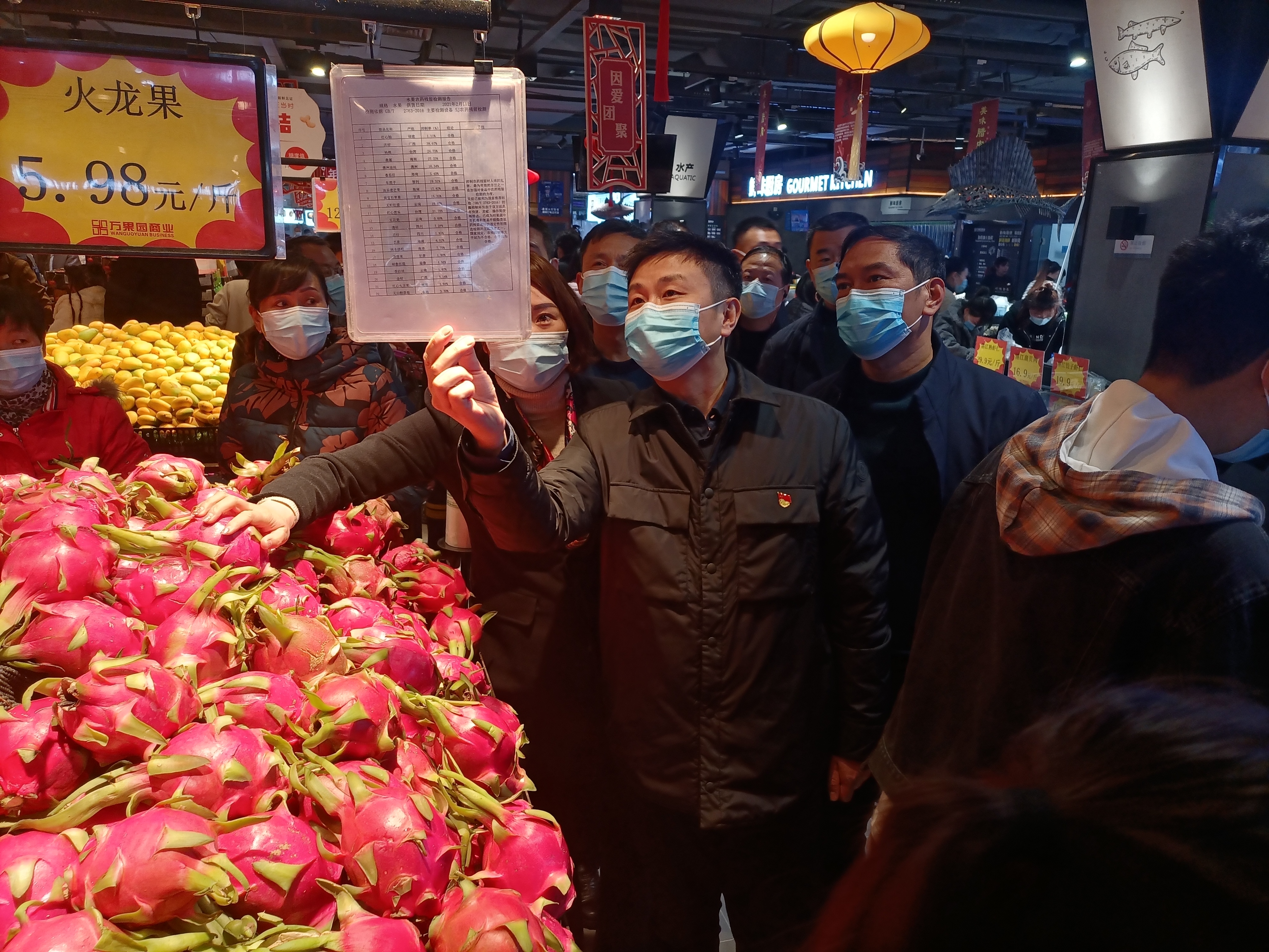 李湛一行還走進(jìn)萬果園量販五一廣場店,詳細(xì)了解疫情防控、安全管理、市場經(jīng)營及供應(yīng)情況。他指出,要統(tǒng)籌做好疫情防控、安全生產(chǎn)和市場供應(yīng)工作,嚴(yán)把進(jìn)貨關(guān)囗,保障節(jié)日供應(yīng),全力保證消防安全,有效遏制各類安全事故的發(fā)生,讓群眾放心、安全購物消費。