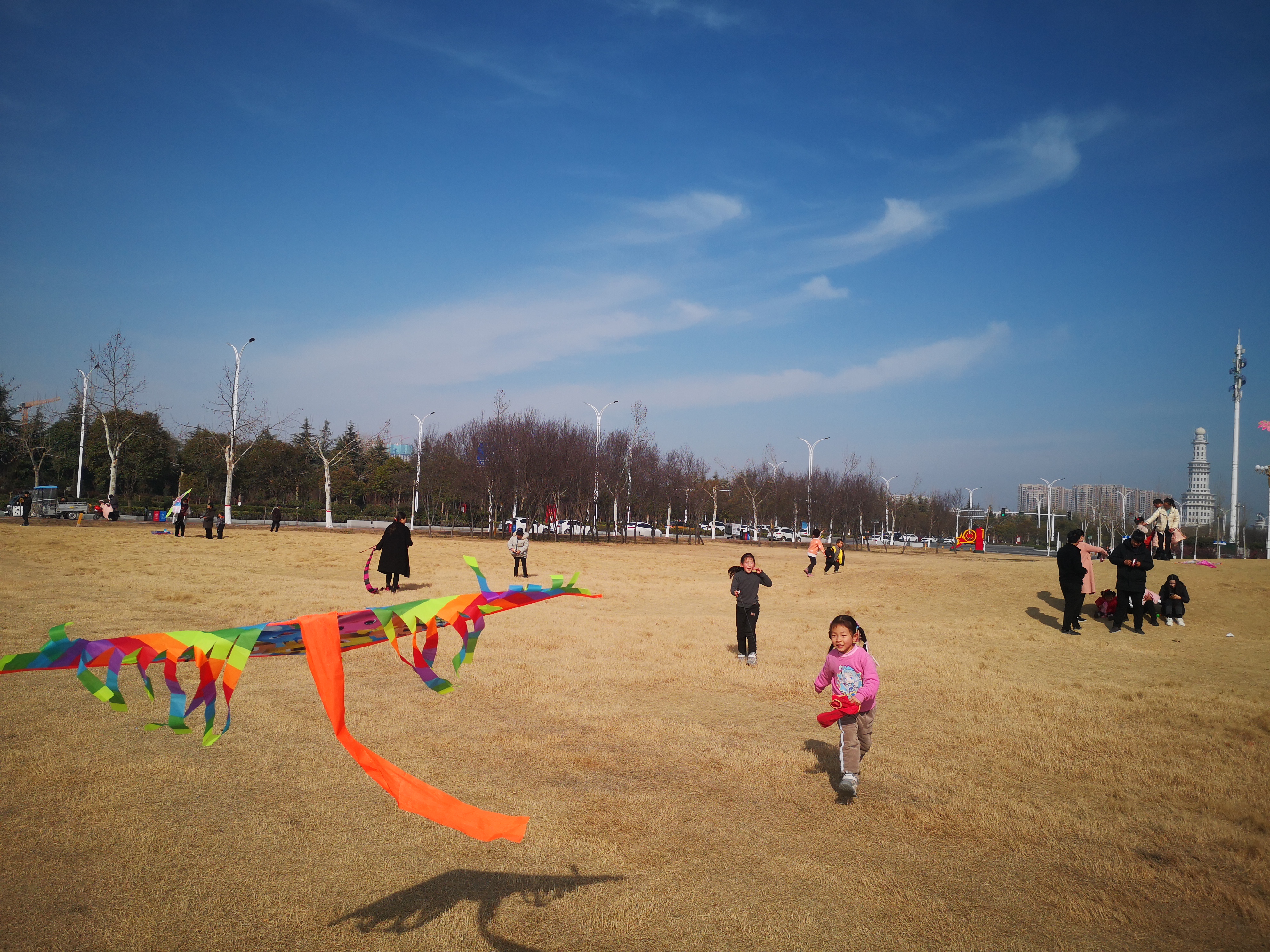 2月16日,周口大道旁邊的大草坪上,小朋友在放飛風(fēng)箏。當(dāng)日,藍(lán)天白云,春光正好,民眾樂享春節(jié)假日。
