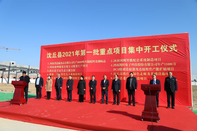 2月20日上午 ,沈丘縣舉行了2021年第一批重點(diǎn)項(xiàng)目集中儀式。此次集中開(kāi)工項(xiàng)目共9個(gè),總投資57.57億元,2021年計(jì)劃投資26.2億元。