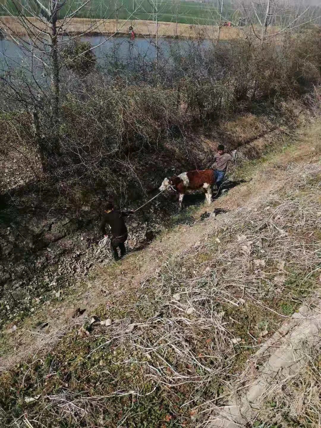 接警后,距離事發(fā)地點(diǎn)最近的周口高速二大隊(duì)項(xiàng)城中隊(duì)值班民警迅速趕往現(xiàn)場(chǎng)。民警到達(dá)現(xiàn)場(chǎng)后了解到,一輛專(zhuān)業(yè)運(yùn)輸肉牛貨車(chē)從北方到南方運(yùn)輸肉牛,有兩頭牛在行駛途中突然受驚撞破了車(chē)上鋼管?chē)鷻谔搅烁咚俟飞?,其中一頭又越過(guò)中央隔離護(hù)欄跑到了對(duì)向車(chē)道。一輛行駛中轎車(chē)躲避不及與牛發(fā)生碰撞,導(dǎo)致車(chē)輛嚴(yán)重?fù)p壞,牛被撞死。另一頭沿著高速公路護(hù)欄來(lái)回折騰著跑,過(guò)路車(chē)輛紛紛躲避,形勢(shì)也十分危險(xiǎn)。民警立即指揮來(lái)車(chē)暫停,招呼司機(jī)等人把牛趕下高速公路邊溝,減少危險(xiǎn),然后分段站在護(hù)欄處把守,讓有捉牛經(jīng)驗(yàn)的車(chē)主和司機(jī)在邊溝內(nèi)捉牛。