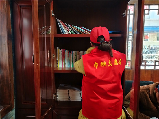 上午9點(diǎn),天空中偶有零星小雨,市民驛站里卻有幾位市民正在這里讀書,古色古香的書柜,整齊地?cái)[放著各類書籍,文學(xué)、百科、養(yǎng)生書籍俱全。周口市慈孝文化促進(jìn)會的志愿者每天都在值班,隨時(shí)打掃衛(wèi)生,為市民提供力所能及的幫助。