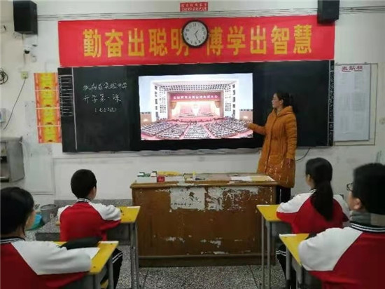 “在浙江省嘉興市有一處美麗的風景——南湖,不僅以秀麗的煙雨風光享有盛名,而且還因中國共產(chǎn)黨第一次全國代表大會在這里勝利閉幕而備受世人矚目……”3月1日上午8時30分,記者在扶溝縣回族小學看到,學校全體師生正在同一時間觀看“開學第一課”。