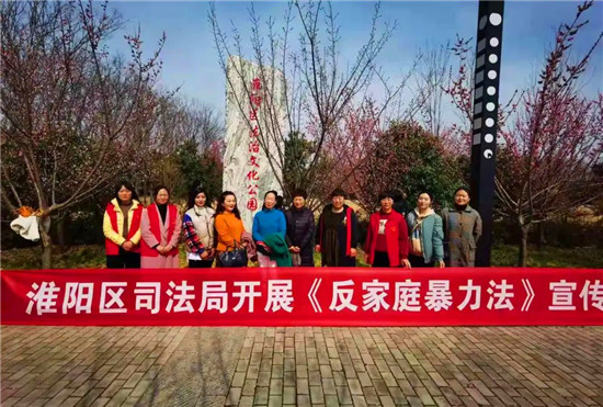 座談會結(jié)束之后,大家化身普法志愿者,前往淮陽主題森林公園·梅園,給前來賞花游玩的群眾普及法律知識,針對女性同胞講解婦女兒童保護、化妝品安全、財產(chǎn)權(quán)益、婚姻家庭權(quán)益、家庭暴力等方面的知識,進一步加強婦女們的法律意識。