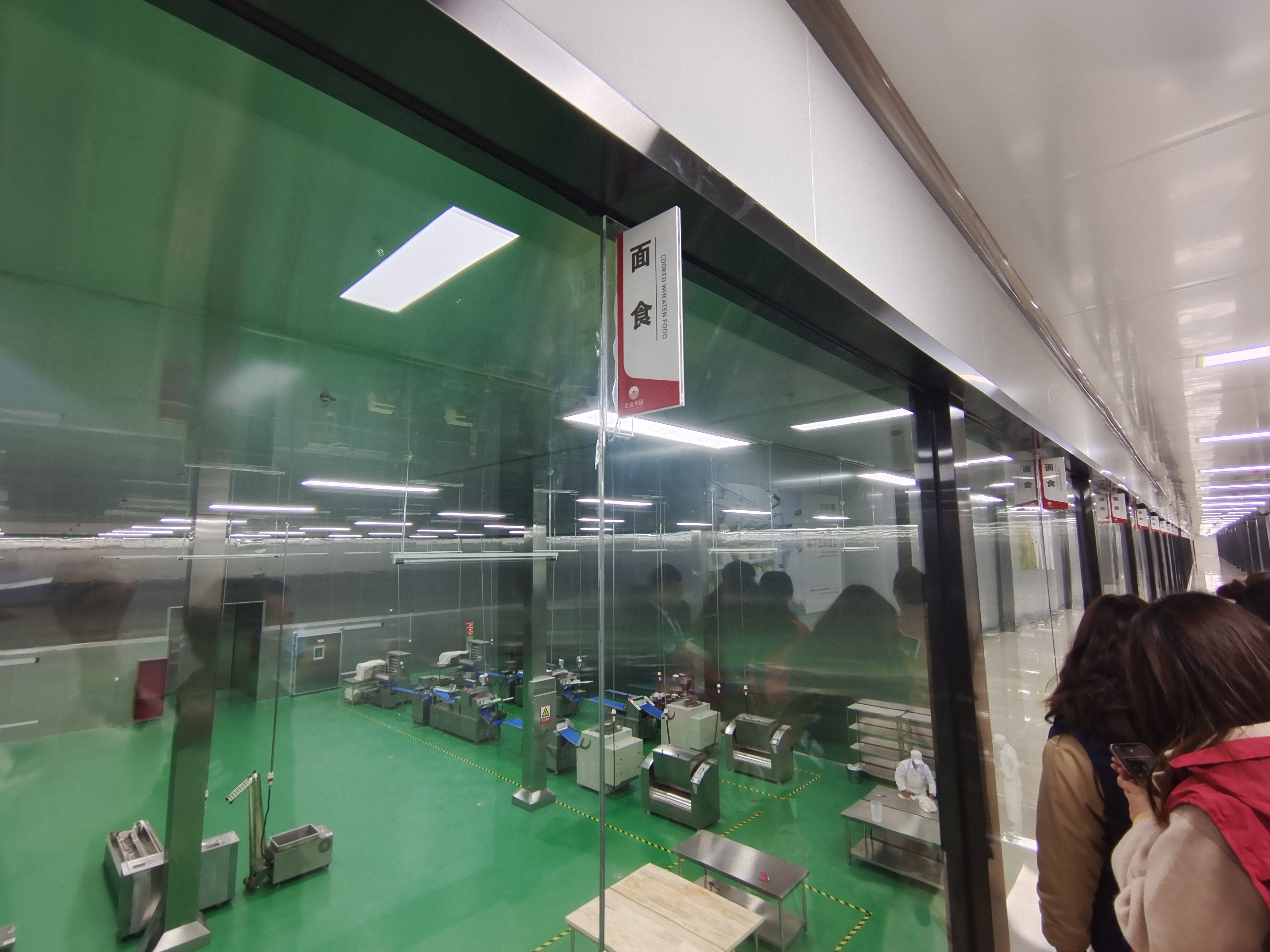 在位于川匯區(qū)女媧路88號的乾盛央廚,直播團隊用圖文形式實時現(xiàn)場呈現(xiàn)午餐制作整體環(huán)境。隔著參觀走廊上的玻璃,全線開機一小時能出12000個無添加饅頭的面食車間,從生米到熟飯全自動機械化制作的米飯車間,全程紫外線消毒、菜品全清真的烹飪車間,流水線上分盒分箱并與物流區(qū)無縫銜接的分餐生產(chǎn)線,這些在主播與乾盛央廚工作人員的一問一答中呈現(xiàn)在觀看直播的家長朋友們面前。“我們不僅做飯,餐具也由我們提供,餐具是PPP材料,耐高溫,安全無毒,筷子、勺子是不銹鋼的。”工作人員介紹。