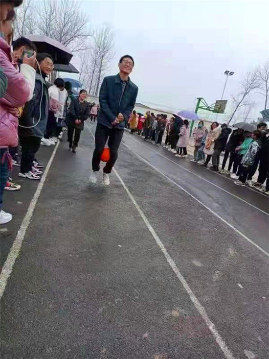 隨著裁判員一聲令下,比賽開始,參賽老師們快如風(fēng)、急如電,奮力沖向前方,把球接力給下一位隊員。接球的隊員等待已久,接過球立馬向前飛奔。整個操場上,加油聲、喝彩聲此起彼伏,熱鬧非凡。學(xué)生們擠滿了賽場,用熱烈的掌聲和歡呼聲為老師們加油,期盼著自己的老師有精彩的表現(xiàn)。