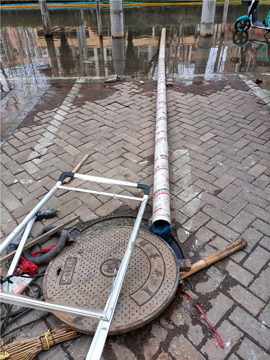 窨井里伸向慢車道的水管